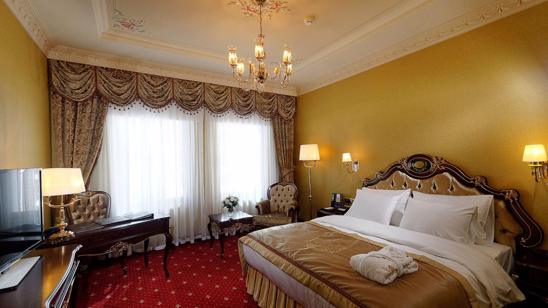 تم تجهيز فندق Meyra Palace في أنقرة بالكامل بالأقمشة التركية التقليدية والأثاث المختار بعناية لتلبية جميع احتياجات ضيوفنا. يضم الفندق جناح Meyra Suite و8 أجنحة إضافية، ليصل المجموع إلى 177 غرفة، جميعها مجهزة بتكييف لضمان راحتكم. يوفر الفندق غرفًا لغير المدخنين وغرفًا للضيوف من ذوي الاحتياجات الخاصة. يمكن لضيوف الفندق الاستفادة مجانًا من خدمة الإنترنت، والنادي الصحي، والحمام التركي، وحوض السباحة، وموقف السيارات المغلق.